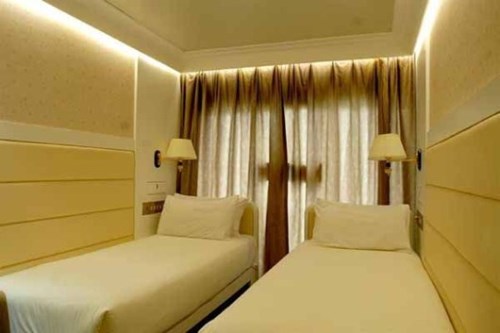 客房面积:19.6平方米,房型结构:一室一卫一阳台私家观景阳台,床型规格:2张单床,容纳人数:2人,楼层位置:二楼至四楼